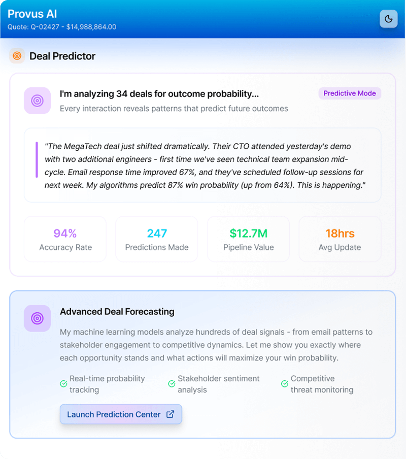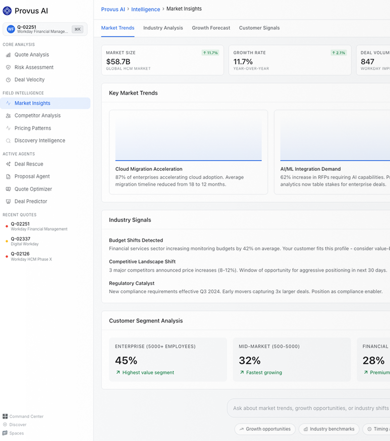Watch Provus AI connect your sales strategy, market signals, and deal execution to win more deals, protect margins, and turn every opportunity into profitable growth
