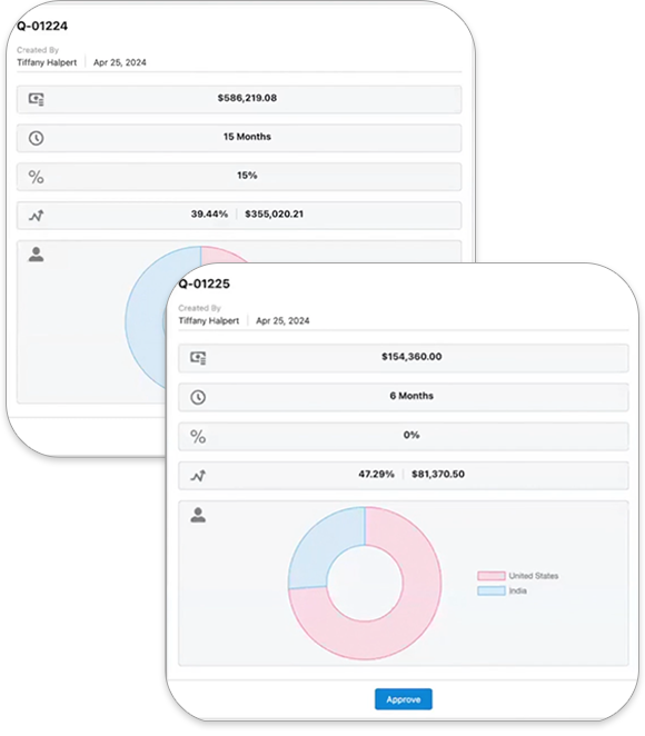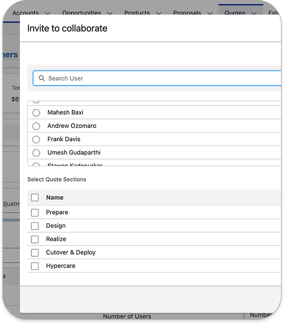 Key stakeholders from delivery, sales, and finance can view and work on the same quote simultaneously
