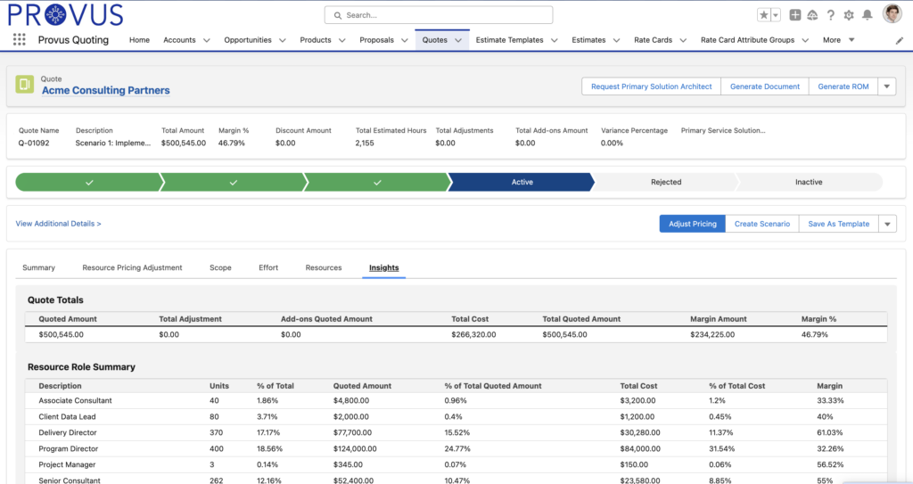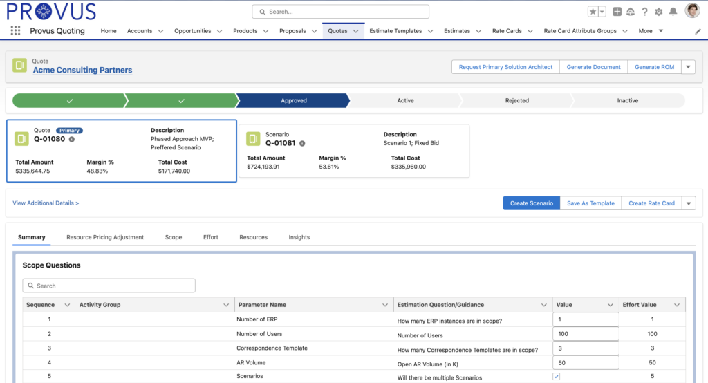 Stop trying to make product CPQ fit your services quoting process. The Provus services CPQ platform is designed for the unique needs of your services organization. Provus offers a collaborative services quoting solution anchored by historical data and led by AI-driven scenario planning so you can maximize revenue, optimize margins, and increase operational efficiency.