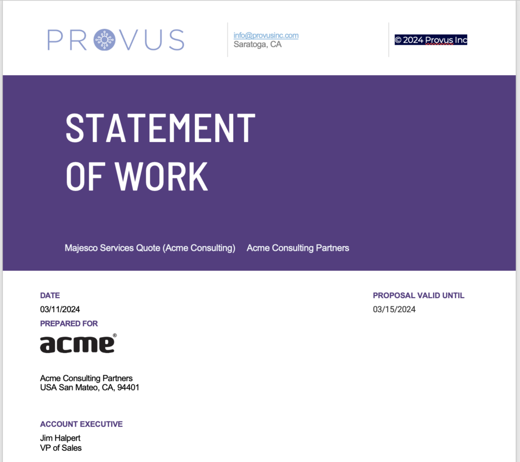 It’s time for services organizations to say goodbye to antiquated spreadsheets and inefficient quoting processes. The Provus services CPQ platform offers guided selling motions, automated collaboration and approvals, advanced pricing capabilities, and more so you can provide your customers (and their customers) with a truly connected client experience.
